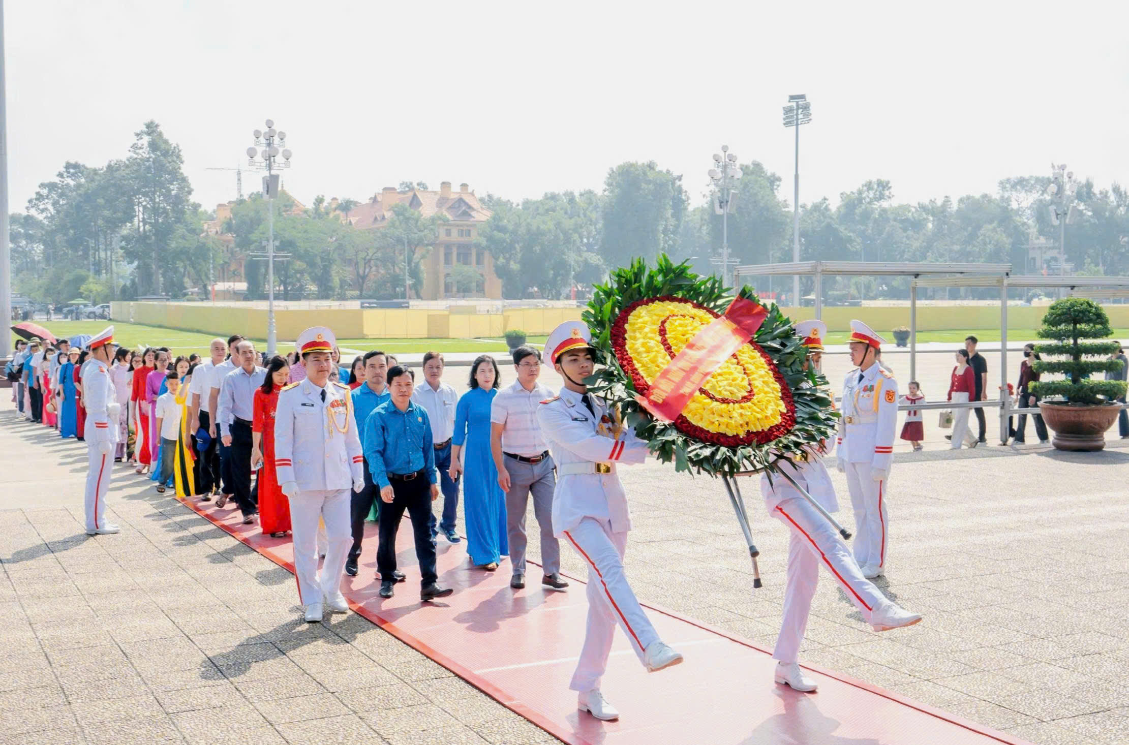 Ngay từ sáng sớm, đoàn cán bộ, giảng viên và người lao động Nhà trường đã khởi hành trong không khí hân hoan, phấn khởi. Tại Quảng trường Ba Đình lịch sử, đoàn đã thành kính dâng hoa tưởng niệm, vào Lăng viếng Chủ tịch Hồ Chí Minh - vị lãnh tụ vĩ đại của dân tộc. Tiếp đó, đoàn tham quan Bảo tàng Hồ Chí Minh, Khu di tích Chủ tịch Hồ Chí Minh tại Phủ Chủ tịch, Chùa Một Cột. Buổi chiều cùng ngày, đoàn tham quan Bảo tàng Lịch sử Quân sự Việt Nam, tìn hiểu lịch sử hào hùng của dân tộc qua các thời kỳ đấu tranh giải phóng và bảo vệ Tổ quốc.