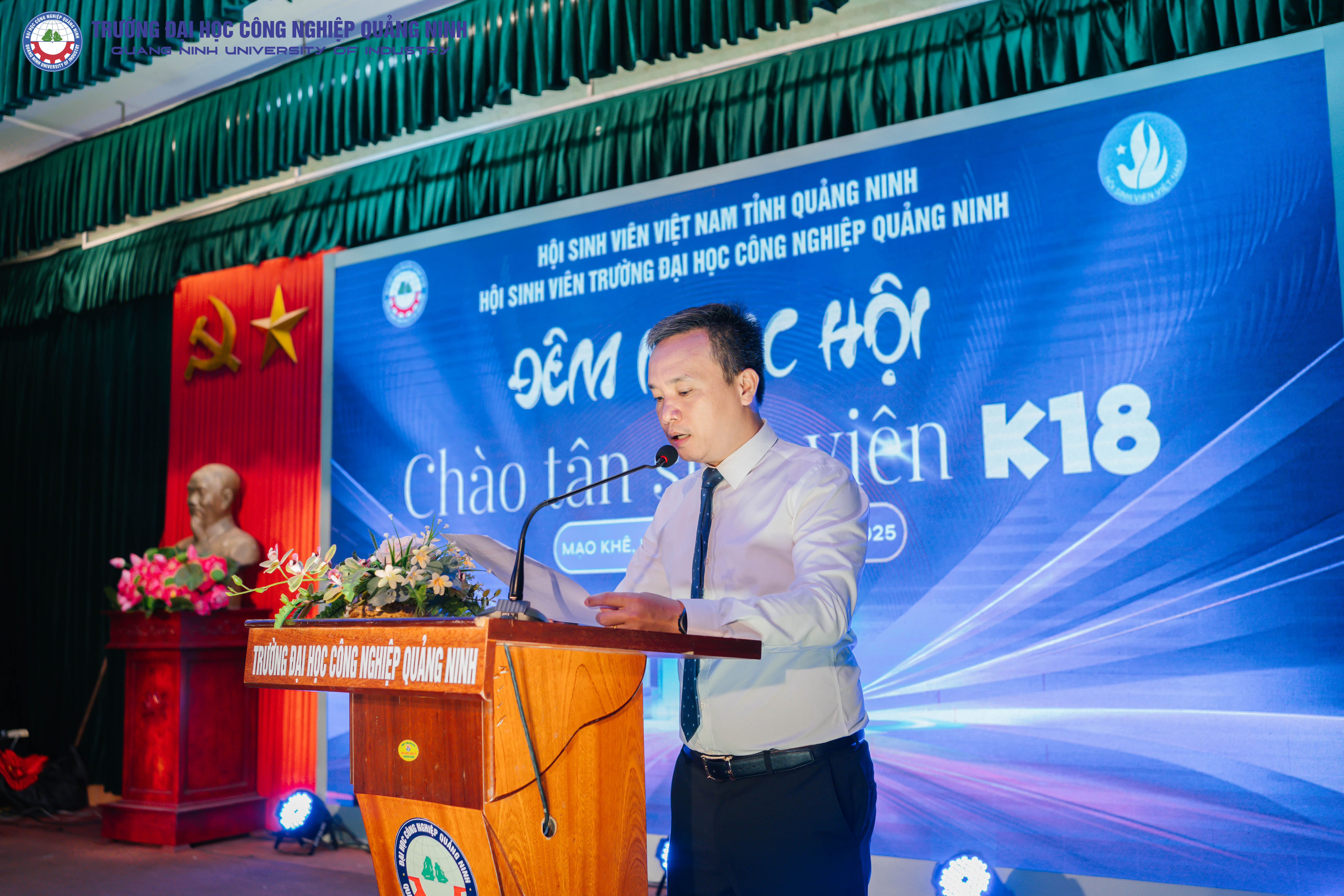 Phát biểu tại chương trình, Đ/c Trần Hoài Nam - Chủ tịch HSV gửi lời chúc mừng nồng nhiệt đến các tân sinh viên khóa 18, đồng thời bày tỏ niềm vui mừng khi được chào đón thế hệ sinh viên mới gia nhập đại gia đình QUI. Thầy nhấn mạnh, Trường Đại học Công nghiệp Quảng Ninh luôn là môi trường học tập và rèn luyện năng động, cởi mở, nơi sinh viên có thể phát huy tối đa năng lực, đam mê và sáng tạo của mình. Thầy mong rằng các bạn tân sinh viên sẽ giữ vững tinh thần học hỏi, đoàn kết và chủ động nắm bắt cơ hội để chinh phục những thành công mới, góp phần xây dựng hình ảnh sinh viên QUI bản lĩnh, tự tin và sáng tạo.