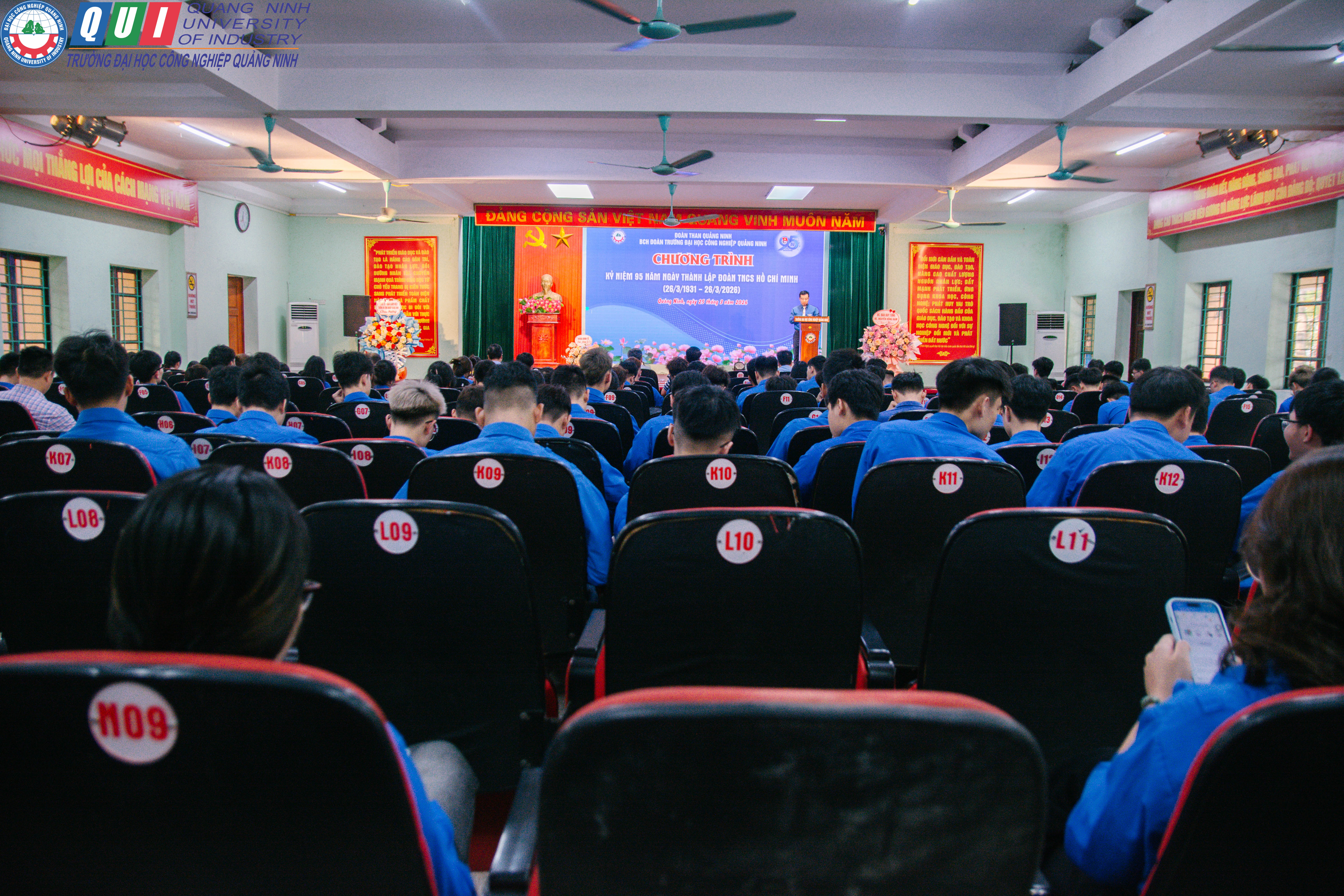 Nhằm thiết thực chào mừng kỷ niệm 95 năm Ngày thành lập Đoàn TNCS Hồ Chí Minh (26/3/1931 – 26/3/2026), chiều ngày 25/3/2026, Đoàn Thanh niên Trường Đại học Công nghiệp Quảng Ninh đã tổ chức chương trình gặp mặt, tuyên dương cán bộ, đoàn viên, thanh niên tiêu biểu. Đây là dịp ý nghĩa để ôn lại truyền thống vẻ vang của tổ chức Đoàn, đồng thời khơi dậy niềm tự hào, tinh thần trách nhiệm trong mỗi đoàn viên, thanh niên Nhà trường.