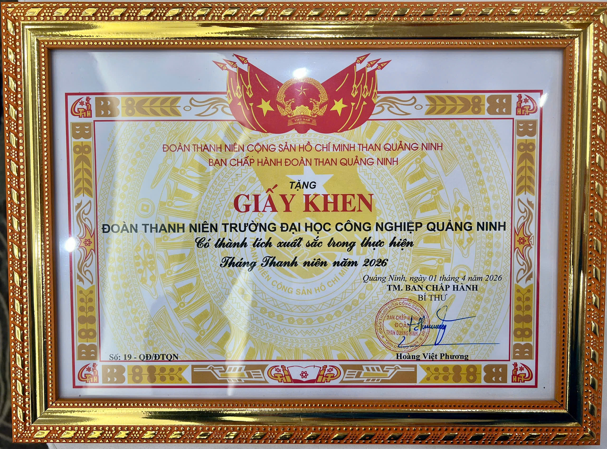Đoàn Thanh niên Trường Đại học Công nghiệp Quảng Ninh vinh dự được nhận khen thưởng trong tháng Thanh niên năm 2026