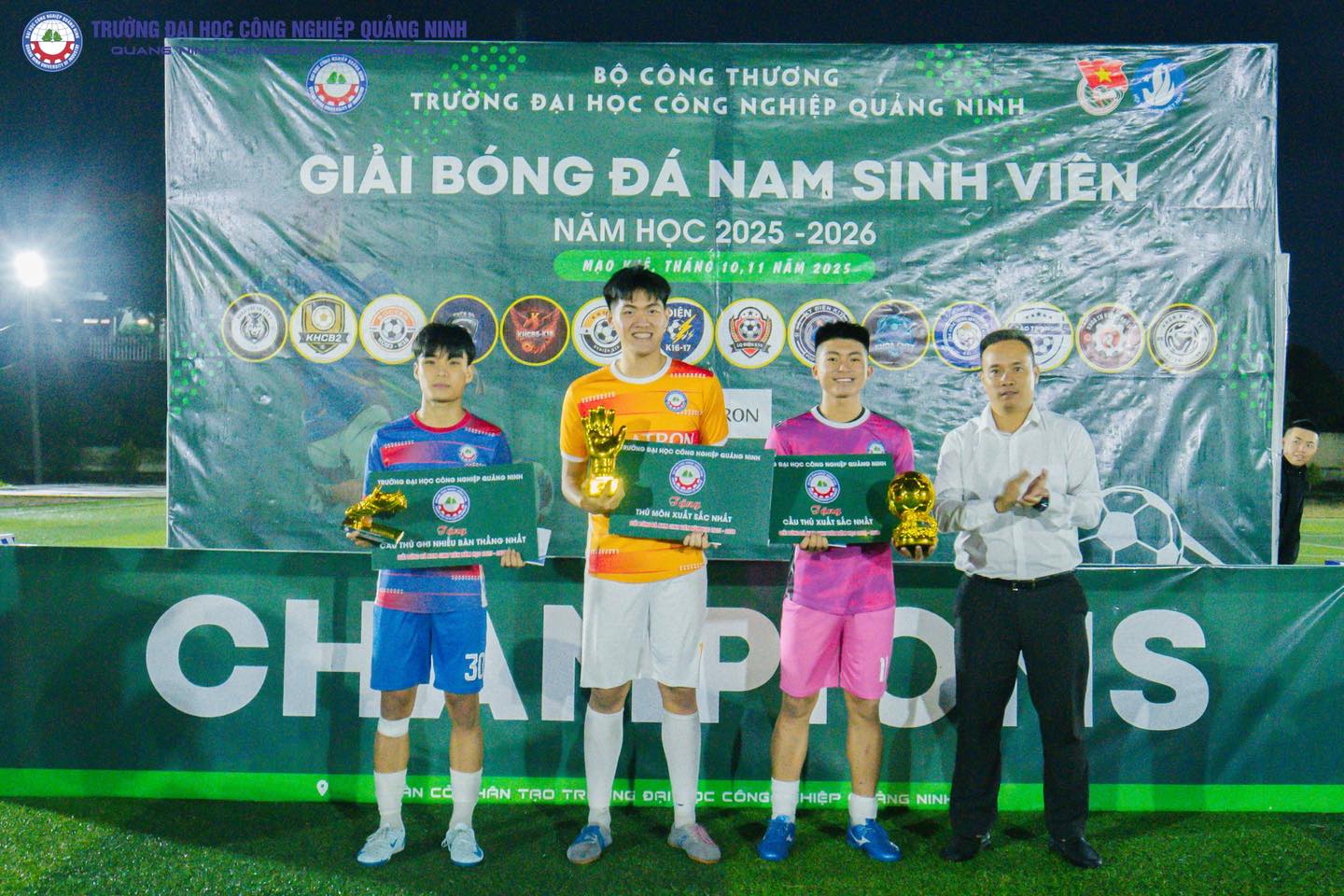 Chiều ngày 18/11/2025 tại Sân cỏ nhân tạo Trường Đại học Công nghiệp Quảng Ninh, đã diễn ra hai trận đấu; chung kết và tranh giải ba của Giải bóng đá Nam học sinh sinh viên năm học 2025 – 2026. Vòng chung kết chung kết vinh hạnh có sự tham dự của Tiến sĩ Phạm Đức Thang – Phó Hiệu trưởng Nhà trường, Đ/c Nguyễn Mạnh Hùng – Bí thư Đoàn Thanh niên Trường, Đ/c Trần Hoài Nam – Chủ tịch Hội Sinh viên Trường, Cùng đại diện các Phòng, Trung tâm, Khoa và toàn thể các đội bóng, cổ động viên. Trận Chung kết đối đầu căng thắng giữa đội khoa Cơ khí Động lực và khoa Kinh tế đã đánh dấu một mùa giải bóng học sinh sinh viên năm học 2025 – 2026 thành công rực rỡ với chiến thắng thuộc về đội tuyển khoa Cơ khí – Động lực.