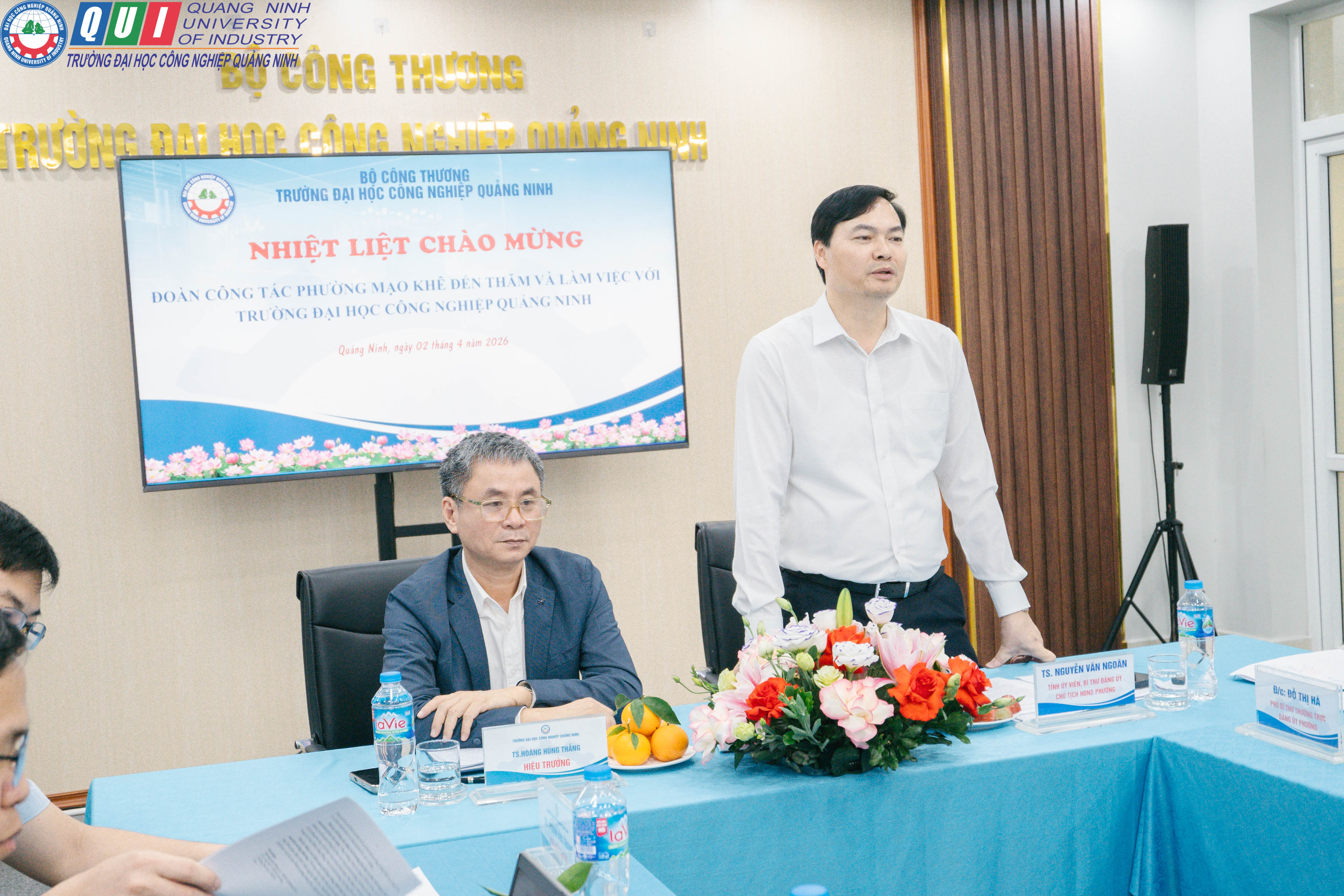Chiều ngày 02/4/2026, Trường Đại học Công nghiệp Quảng Ninh đã tổ chức buổi đón tiếp và làm việc với lãnh đạo phường Mạo Khê, tỉnh Quảng Ninh nhằm trao đổi, thống nhất các nội dung phối hợp trong lĩnh vực giáo dục, đào tạo, nghiên cứu khoa học và phục vụ cộng đồng.