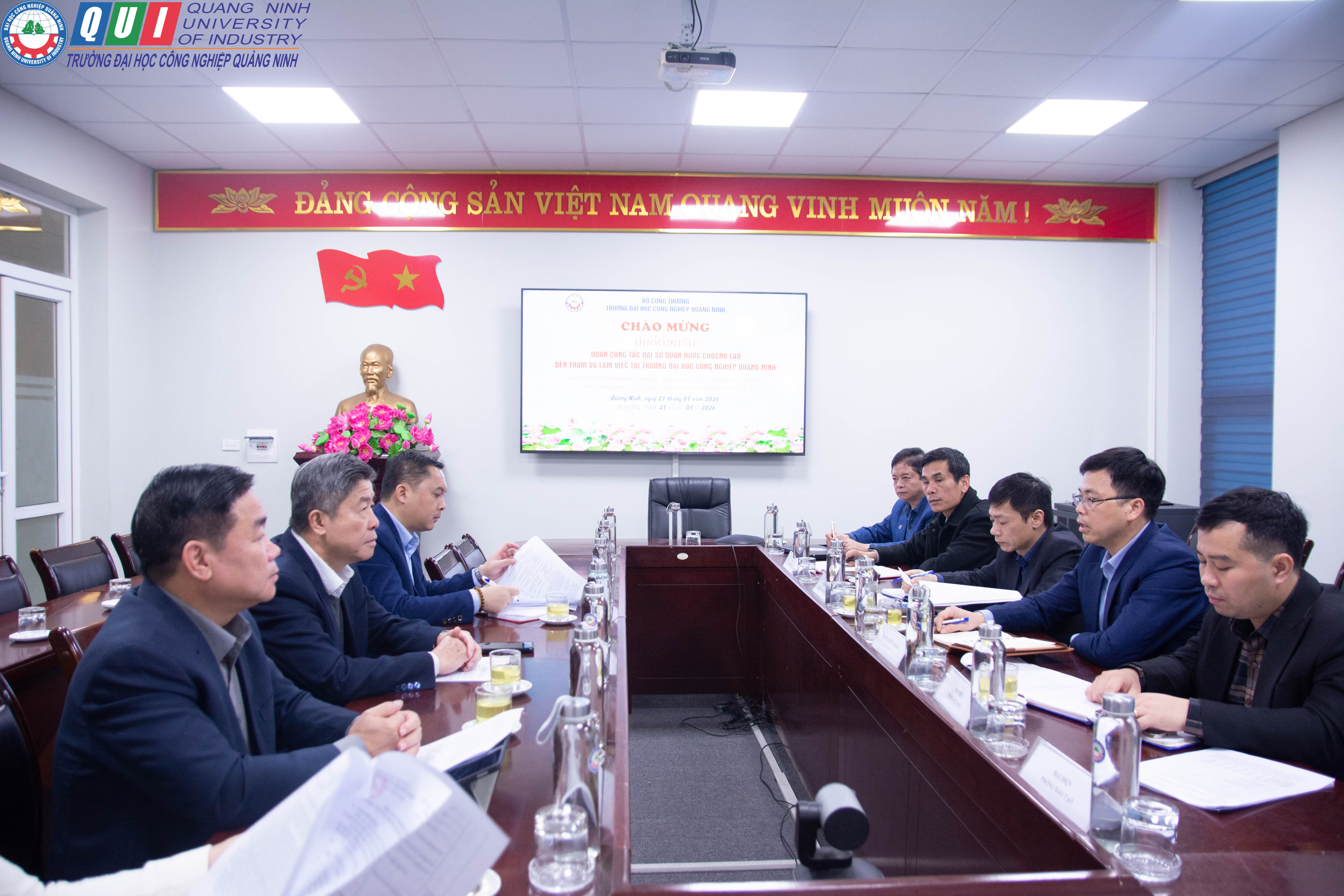 Tại buổi làm việc, hai bên đã tập trung trao đổi về tình hình học tập, sinh hoạt của lưu học sinh Lào tại Trường Đại học Công nghiệp Quảng Ninh; công tác phối hợp trong quản lý lưu học sinh Lào; đồng thời thảo luận các nội dung hợp tác trong tuyển sinh, đào tạo, xây dựng chương trình đào tạo phù hợp với nhu cầu nguồn nhân lực. Hai bên cũng thống nhất tăng cường kết nối, trao đổi thông tin giữa Nhà trường và các cơ quan giáo dục của Lào, hướng tới mở rộng hợp tác trong thời gian tới.