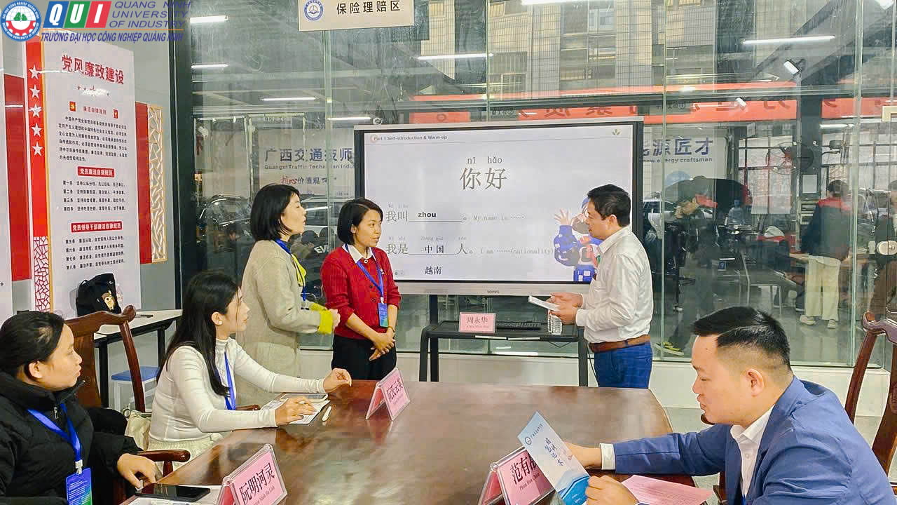 Chiều cùng ngày, đoàn công tác đã tham gia buổi học tiếng Trung đầu tiên, chính thức khởi động chương trình học tập, trao đổi và bồi dưỡng chuyên môn tại Học viện Kỹ thuật Giao thông Quảng Tây.
