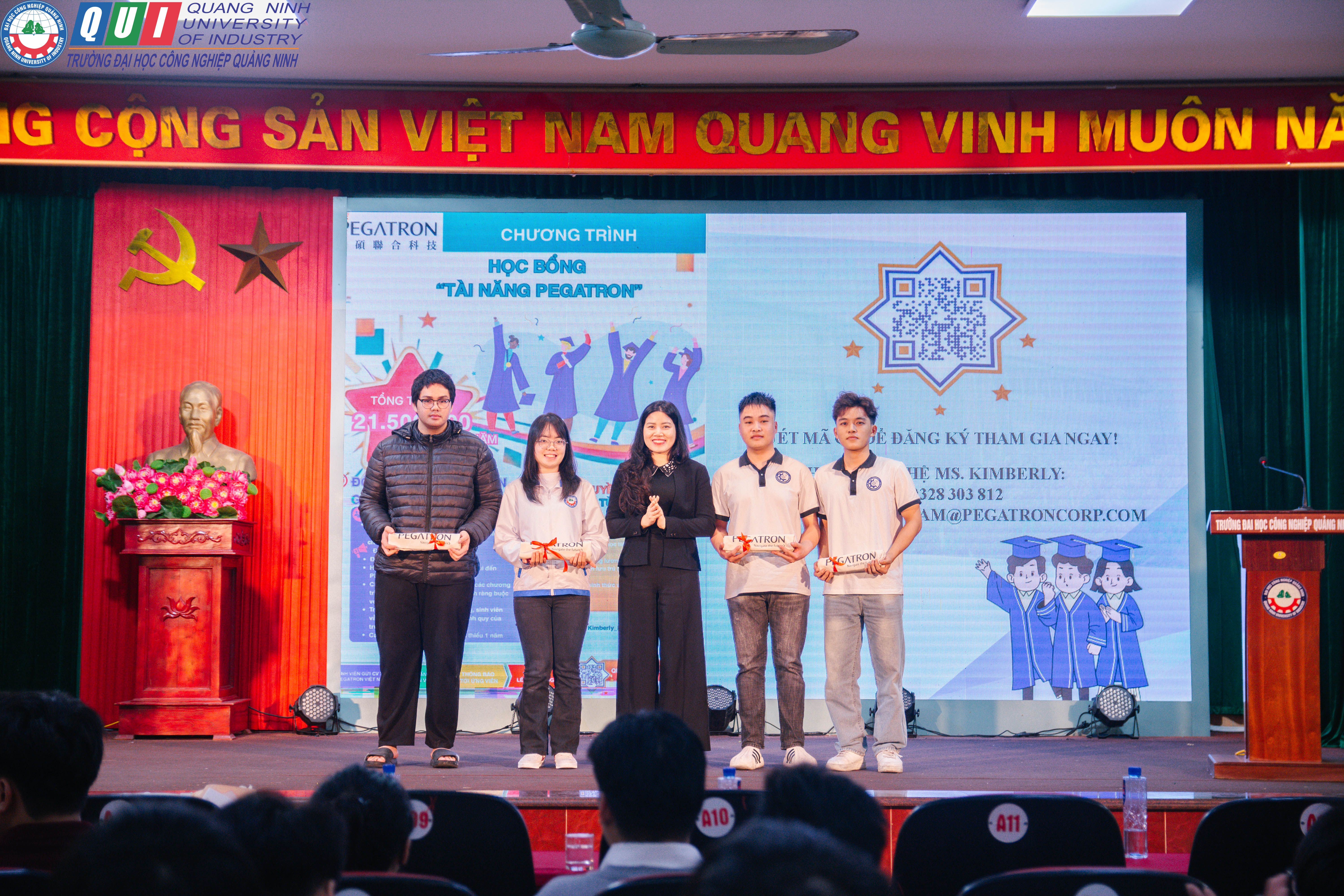 Chương trình học bổng Tài năng Pegatron được Công ty triển khai thực hiện từ năm 2024 với mong muốn ươm mầm, hỗ trợ các sinh viên trong học tập kiến thức chuyên môn và ngoại ngữ để có thể đáp ứng tốt các yêu cầu của thị trường lao động ngay khi tốt nghiệp. Năm 2025 Trường Đại học Công nghiệp Quảng Ninh đã có 10 sinh viên xuất sắc được trao Học bổng Tài năng Pegatron với trị giá mỗi suất học bổng là 21.500.000 đồng/năm, 20 sinh viên nhận Học bổng đồng hành Pegatron với trị giá mỗi suất học bổng là 3.000.000đ.
