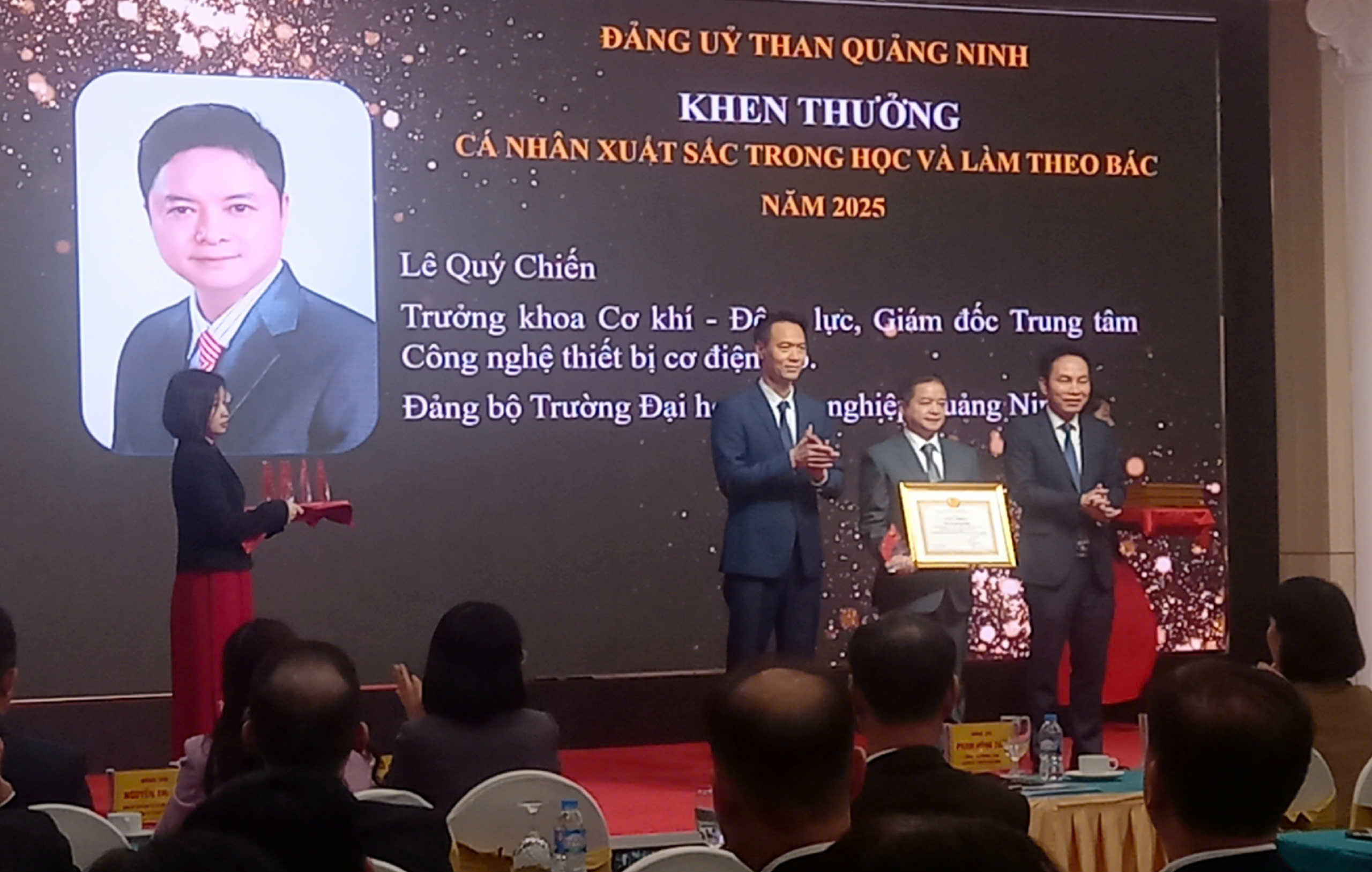 Đảng bộ Trường Đại học Công nghiệp Quảng Ninh vinh dự có đồng chí Lê Quý Chiến - Ủy viên BCH Đảng bộ, Bí thư chi bộ, Trưởng Khoa Cơ khí - Động lực vinh dự được Đảng ủy Than Quảng Ninh tặng Giấy khen có thành tích xuất sắc trong học và làm theo Bác năm 2025.Tại hội nghị, Đảng ủy TQN đã báo cáo đánh giá tổng kết phong trào “Học tập và làm theo tư tưởng, đạo đức, phong cách Hồ Chí Minh”; công tác giáo dục lý luận chính trị; phong trào thi đua “Dân vận khéo”, hoạt động của Ban chỉ đạo 35; xây dựng hình ảnh “Người thợ mỏ - Người chiến sỹ” năm 2025; triển khai phương hướng, nhiệm vụ trọng tâm năm 2026. Theo đó, năm 2025, Đảng ủy TQN đã triển khai xây dựng mô hình điển hình tiêu biểu “Học và làm theo Bác” trong toàn Đảng bộ. Qua đó, việc đăng ký thực hiện đến thẩm định, đánh giá kết quả mô hình đã đi vào nền nếp, cấp ủy các cơ sở đã cụ thể hóa việc triển khai thực hiện, xây dựng các mô hình điển hình “Học và làm theo Bác” trên tất cả các lĩnh vực công tác, gắn với nhiệm vụ được giao. Toàn Đảng bộ có 435 mô hình tập thể, cá nhân đăng ký triển khai thực hiện, trên cơ sở đó, các chi, đảng bộ cơ sở lựa chọn 165 mô hình tập thể và cá nhân đăng ký cấp Đảng bộ TQN; Đảng ủy TQN lựa chọn, đăng ký xây dựng 10 mô hình cấp tỉnh; nhiều mô hình đã mang lại hiệu quả thiết thực, góp phần hoàn thành nhiệm vụ chính trị từ chi bộ đến cơ sở, tạo sự lan tỏa rộng rãi phong trào thi đua “Học và làm theo Bác” trong toàn Đảng bộ.