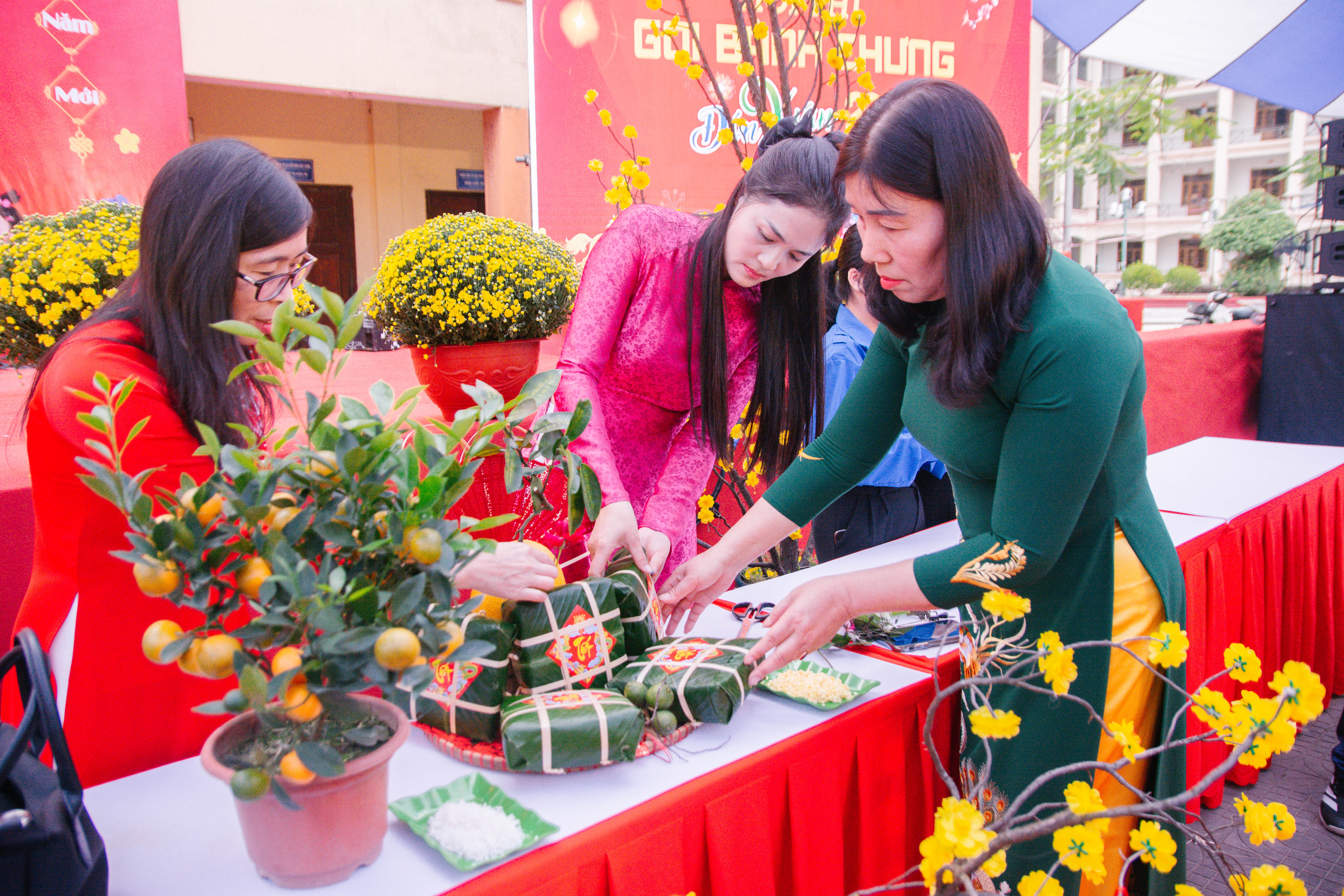 Điểm nhấn của chương trình là hội thi gói bánh chưng, thu hút sự tham gia sôi nổi của các tổ công đoàn. Những chiếc bánh chưng xanh vuông vắn, mang đậm hương vị Tết cổ truyền không chỉ thể hiện sự khéo léo, sáng tạo mà còn là kết quả của tinh thần đoàn kết, phối hợp nhịp nhàng giữa các thành viên.