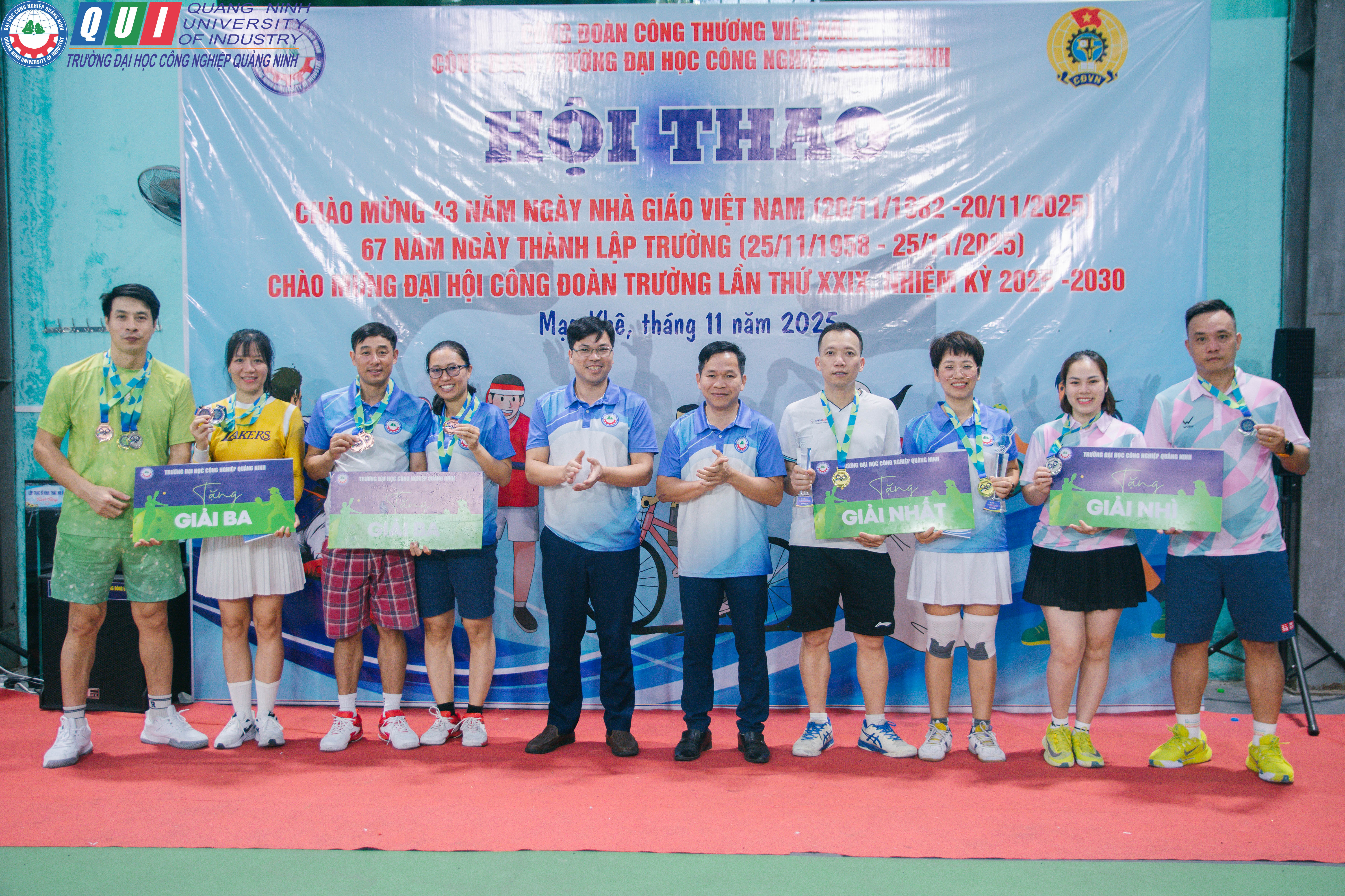 Hướng tới kỷ niệm 43 năm Ngày Nhà giáo Việt Nam (20/11/1982 - 20/11/2025), 67 năm Ngày thành lập Trường Đại học Công nghiệp Quảng Ninh (25/11/1958 - 25/11/2025), chào mừng Đại hội Công đoàn Trường lần thứ XXIX, nhiệm kỳ 2025-2030; Công đoàn Trường Đại học Công nghệp Quảng Ninh phối hợp tổ chức thành công Giải Pickleball khối cán bộ, viên chức lao động với khí thế thi đua sôi nổi, thiết thực, tạo không khí vui tươi, đoàn kết trong toàn trường.