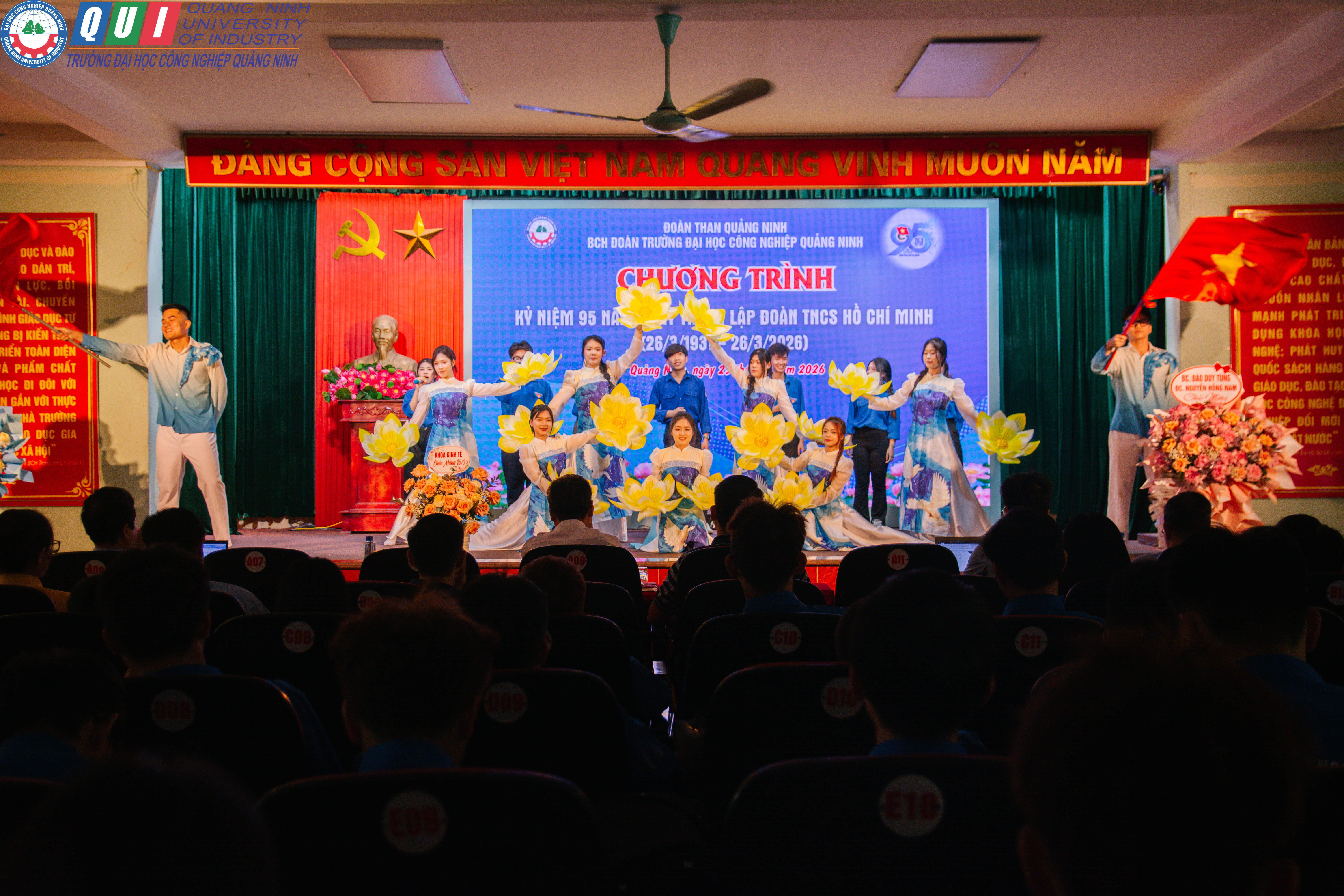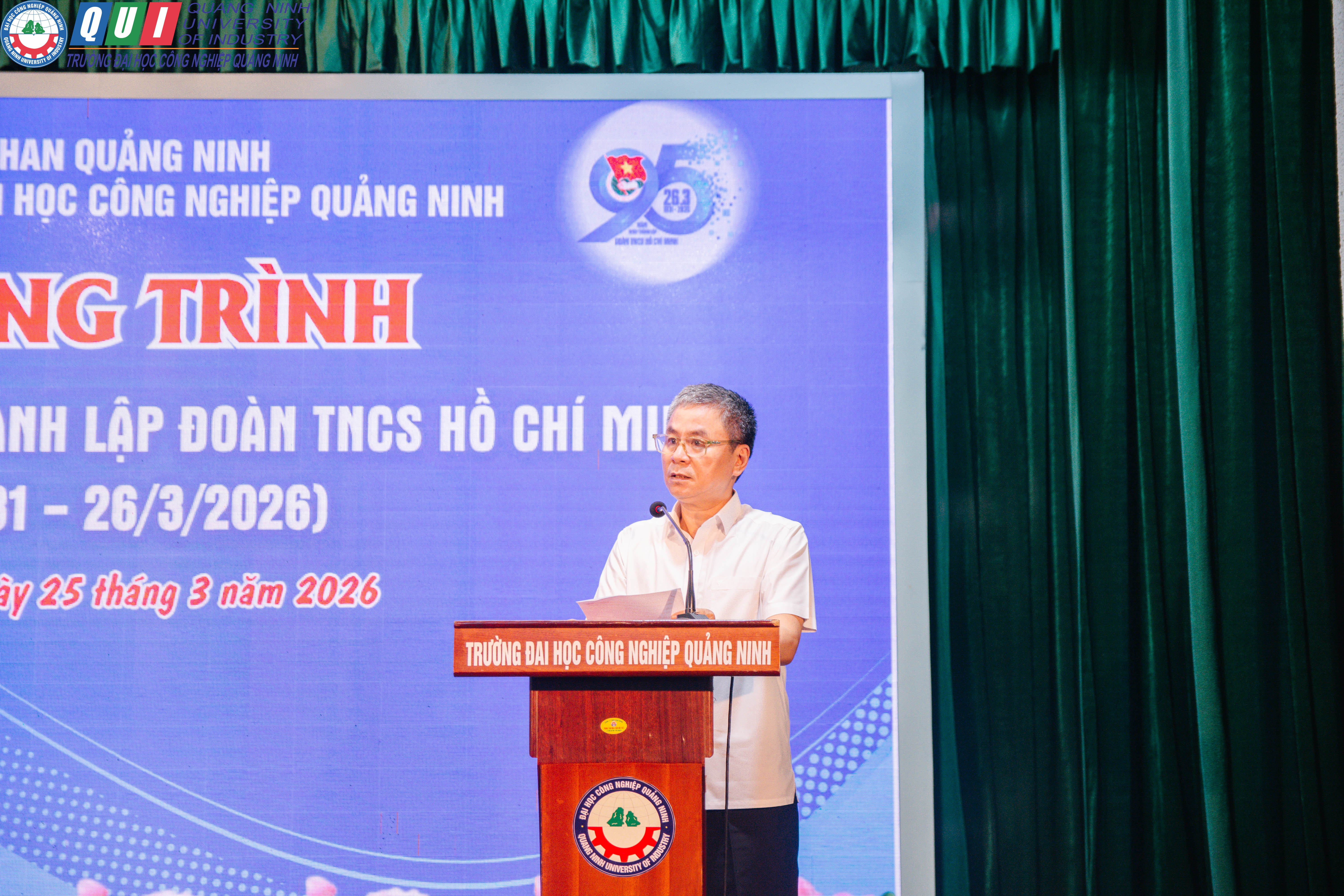 Nhằm thiết thực chào mừng kỷ niệm 95 năm Ngày thành lập Đoàn TNCS Hồ Chí Minh (26/3/1931 – 26/3/2026), chiều ngày 25/3/2026, Đoàn Thanh niên Trường Đại học Công nghiệp Quảng Ninh đã tổ chức chương trình gặp mặt, tuyên dương cán bộ, đoàn viên, thanh niên tiêu biểu. Đây là dịp ý nghĩa để ôn lại truyền thống vẻ vang của tổ chức Đoàn, đồng thời khơi dậy niềm tự hào, tinh thần trách nhiệm trong mỗi đoàn viên, thanh niên Nhà trường.