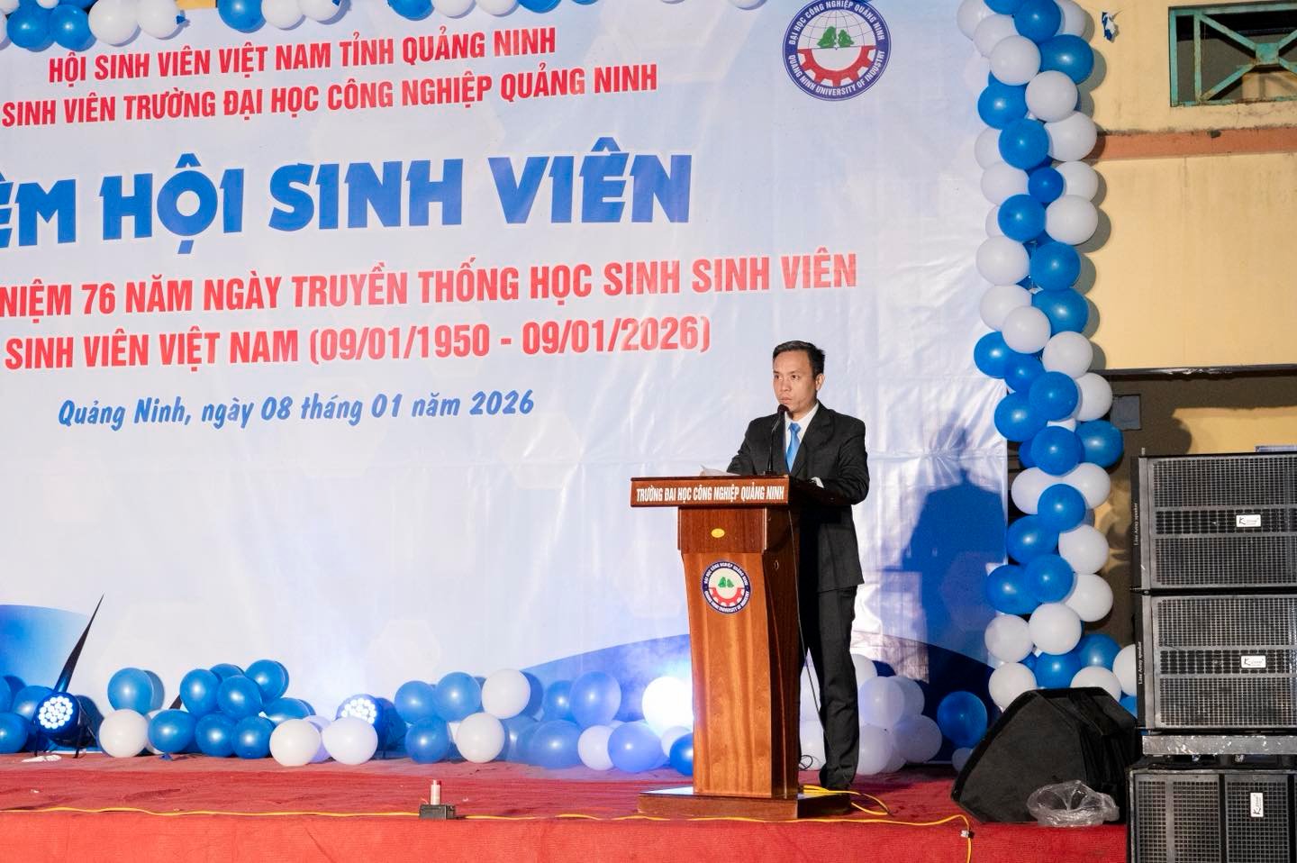 Ngày 08/01/2026, Hội sinh viênTrường Đại học Công nghiệp Quảng Ninh đã tổ Đên hội sinh chào mừng kỷ niệm 76 năm Ngày truyền thống Học sinh – Sinh viên và Hội Sinh viên Việt Nam (09/01/1950 – 09/01/2026).Tham gia chương trình có Đ/c Triệu Thị Hồng Hạnh – Ủy viên Ban Thường vụ Tỉnh đoàn, Phó Chủ tịch Hội Sinh viên tỉnh Quảng Ninh; TS. Hoàng Hùng Thắng – Phó Bí thư Đảng ủy, Hiệu trưởng Nhà trường; TS. Lê Hồ Hiếu – Chủ tịch Công đoàn trường; Cùng các thầy cô đại diện phòng khoa trung tâm, các đ/c cựu cán bộ Hội Sinh viên qua các thời kỳ, các bạn sinh viên 5 tốt và sinh viên các CLB các chi hội.