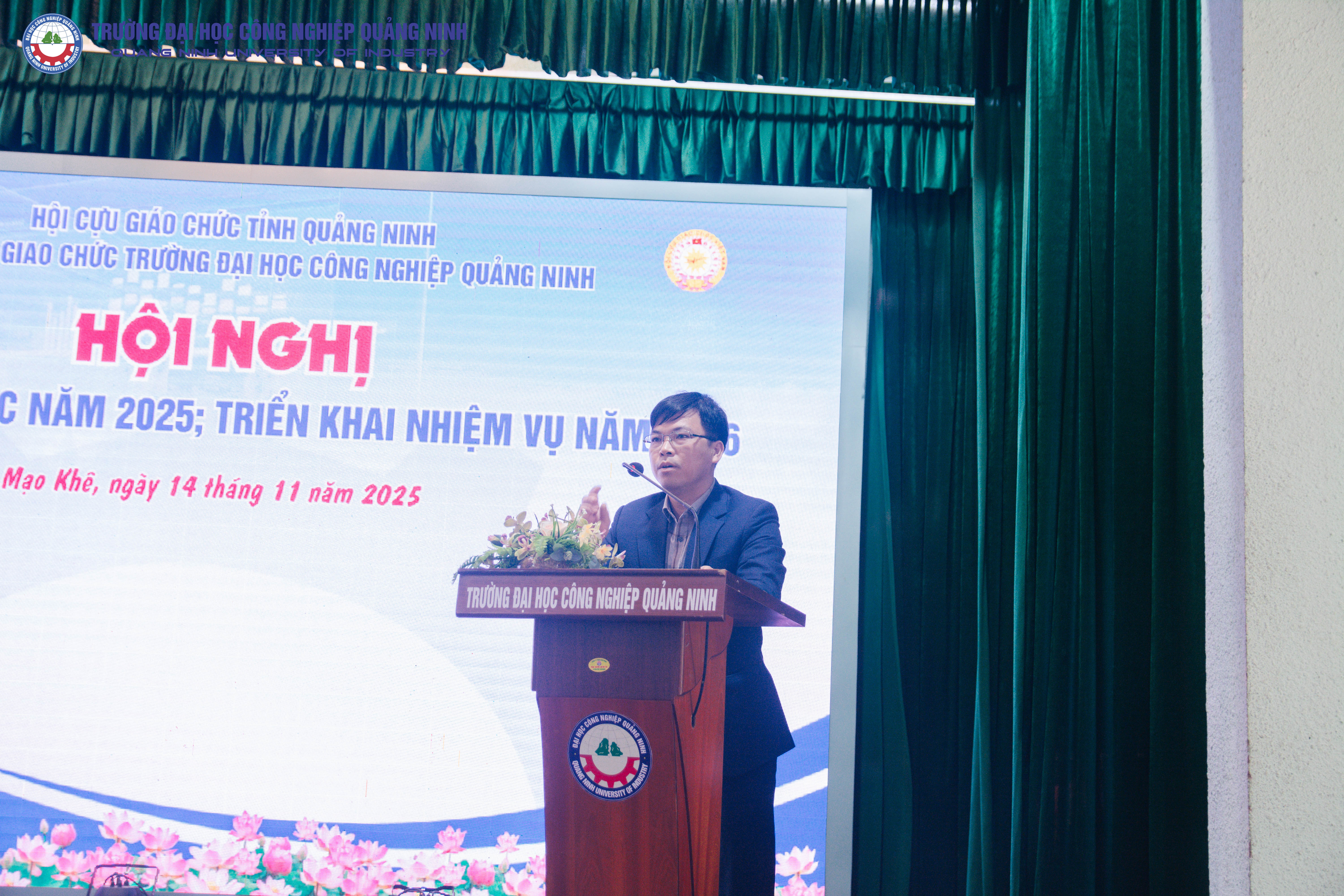 Phát biểu tại Hội nghị, đại diện Ban Giám hiệu Nhà trường TS. Phạm Đức Thang - Phó Hiệu trưởng đã gửi lời cảm ơn chân thành tới các thầy cô trong Chi hội Cựu giáo chức - những người đã dành cả thanh xuân cho sự nghiệp giáo dục và sự phát triển của Trường Đại học Công nghiệp Quảng Ninh, đồng chí cũng nhấn mạnh: “Các thầy cô là nền tảng, là giá trị cốt lõi làm nên truyền thống và uy tín của Nhà trường hôm nay. Những kinh nghiệm quý báu, những đóng góp thầm lặng của đội ngũ nhà giáo đi trước luôn là tài sản vô giá để các thế hệ cán bộ, giảng viên và sinh viên noi theo. Nhà trường luôn trân trọng, ghi nhận và mong tiếp tục nhận được những ý kiến đóng góp tâm huyết của Chi hội để cùng xây dựng một tập thể đoàn kết, sáng tạo và phát triển bền vững.”