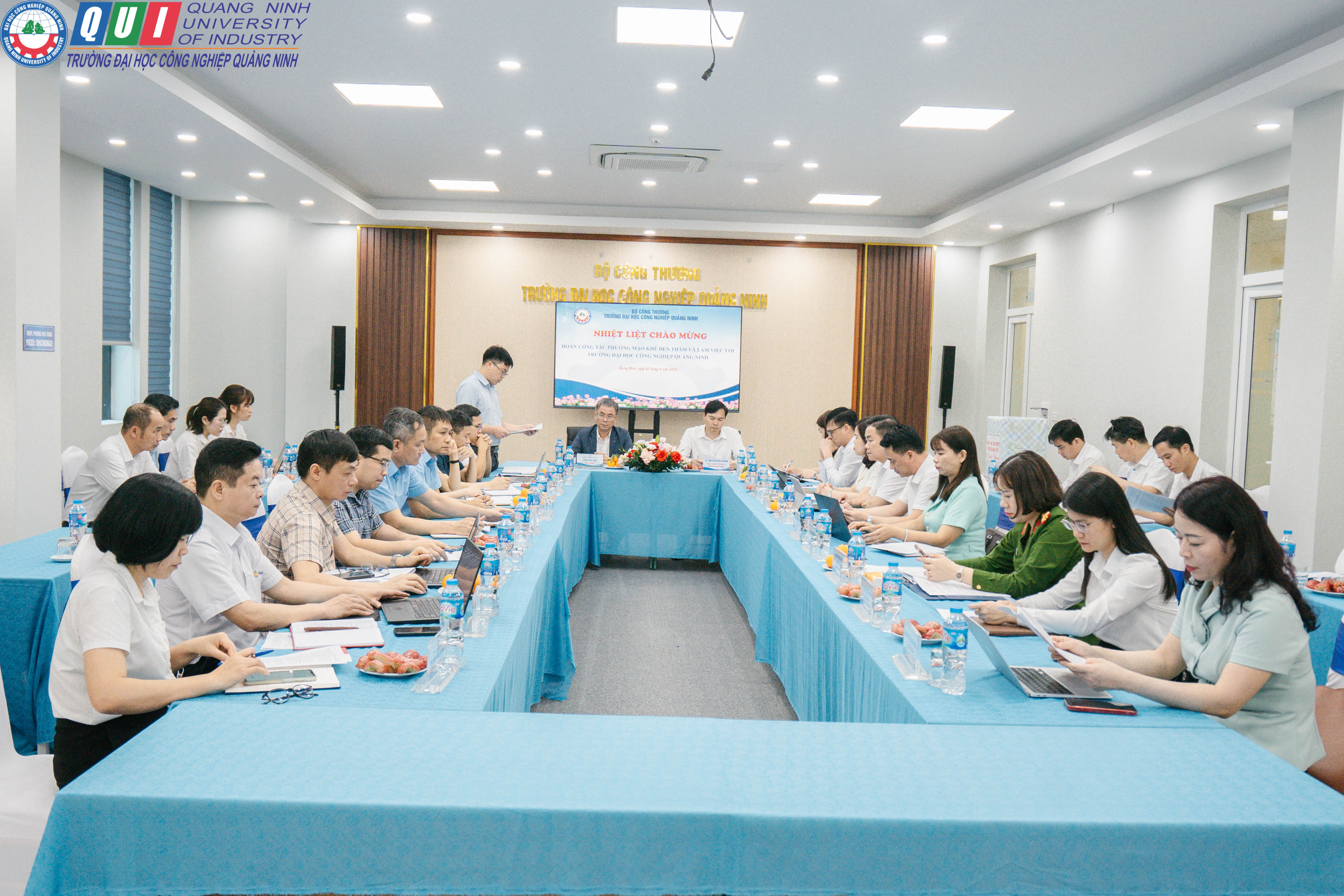 Chiều ngày 02/4/2026, Trường Đại học Công nghiệp Quảng Ninh đã tổ chức buổi đón tiếp và làm việc với lãnh đạo phường Mạo Khê, tỉnh Quảng Ninh nhằm trao đổi, thống nhất các nội dung phối hợp trong lĩnh vực giáo dục, đào tạo, nghiên cứu khoa học và phục vụ cộng đồng.