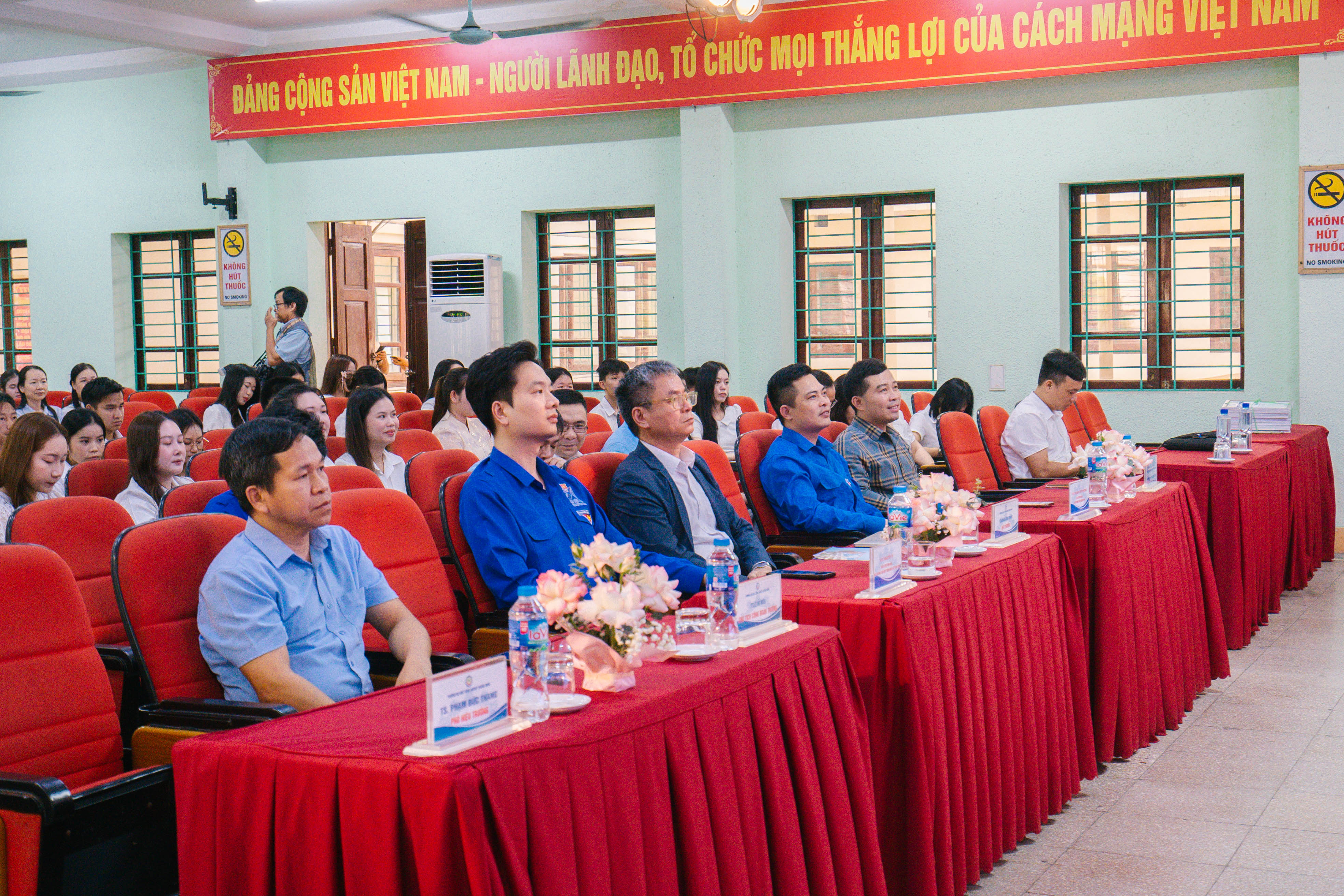 Tới dự và chung vui với lưu học sinh Lào Trường Đại học Công nghiệp Quảng Ninh có TS. Hoàng Hùng Thắng - Bí thư Đảng ủy, Hiệu trường Nhà trường, TS. Lê Hồ Hiếu - CT CĐ trường, các thầy cô đại diện Đoàn Thanh niên, Hội sinh viên, đại diện các phòng ban, khoa đào tạo, đại diện sinh viên Việt Nam cùng toàn thể 135 lưu học sinh Lào đang học tập tại trường. Khách mời tham dự có đồng chí Nguyễn Vũ - Phó thư Tỉnh Đoàn Quảng Ninh, đồng chí Hoàng Việt Phương - Bí thư Đoàn Than Quảng Ninh.
