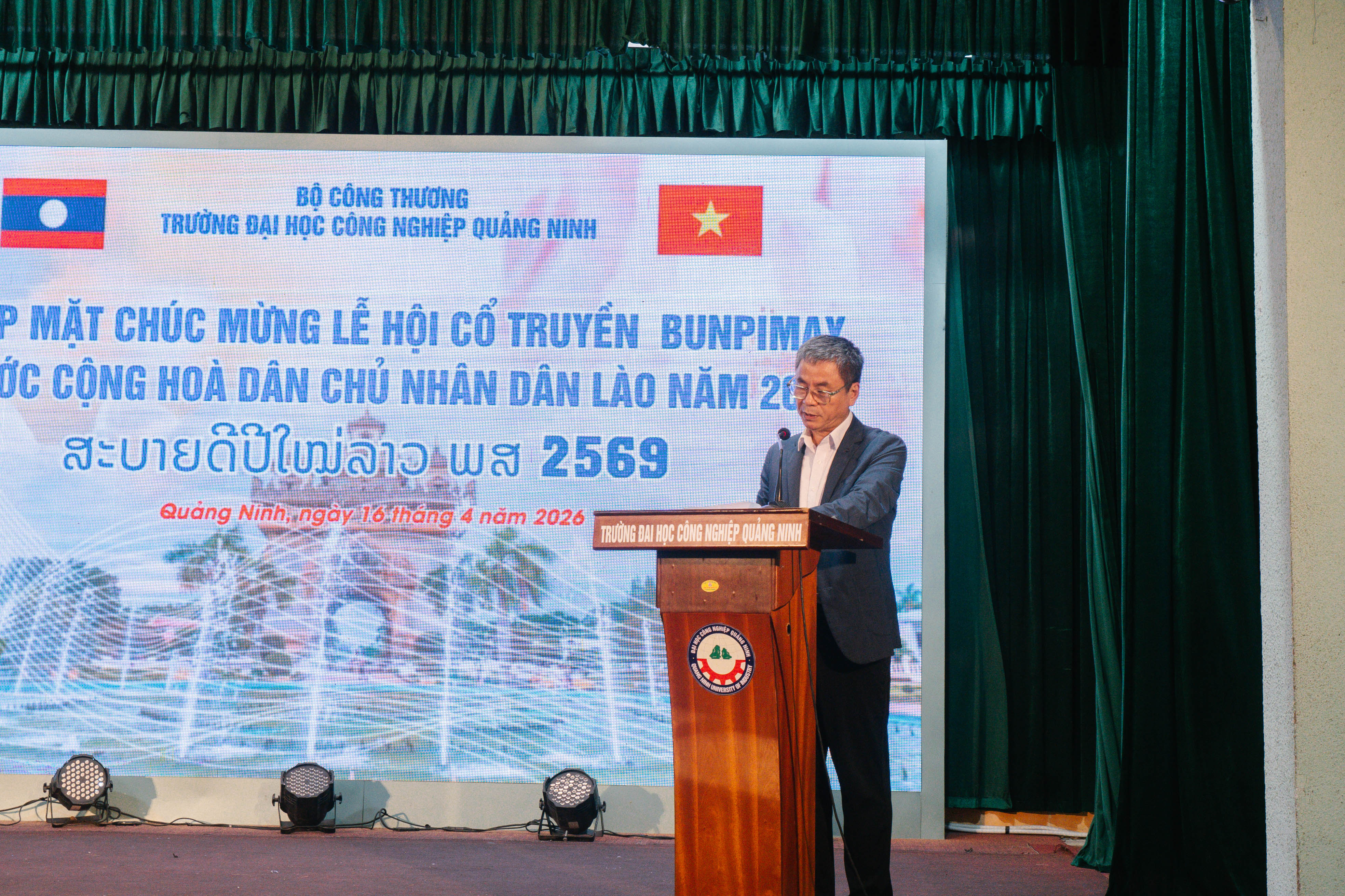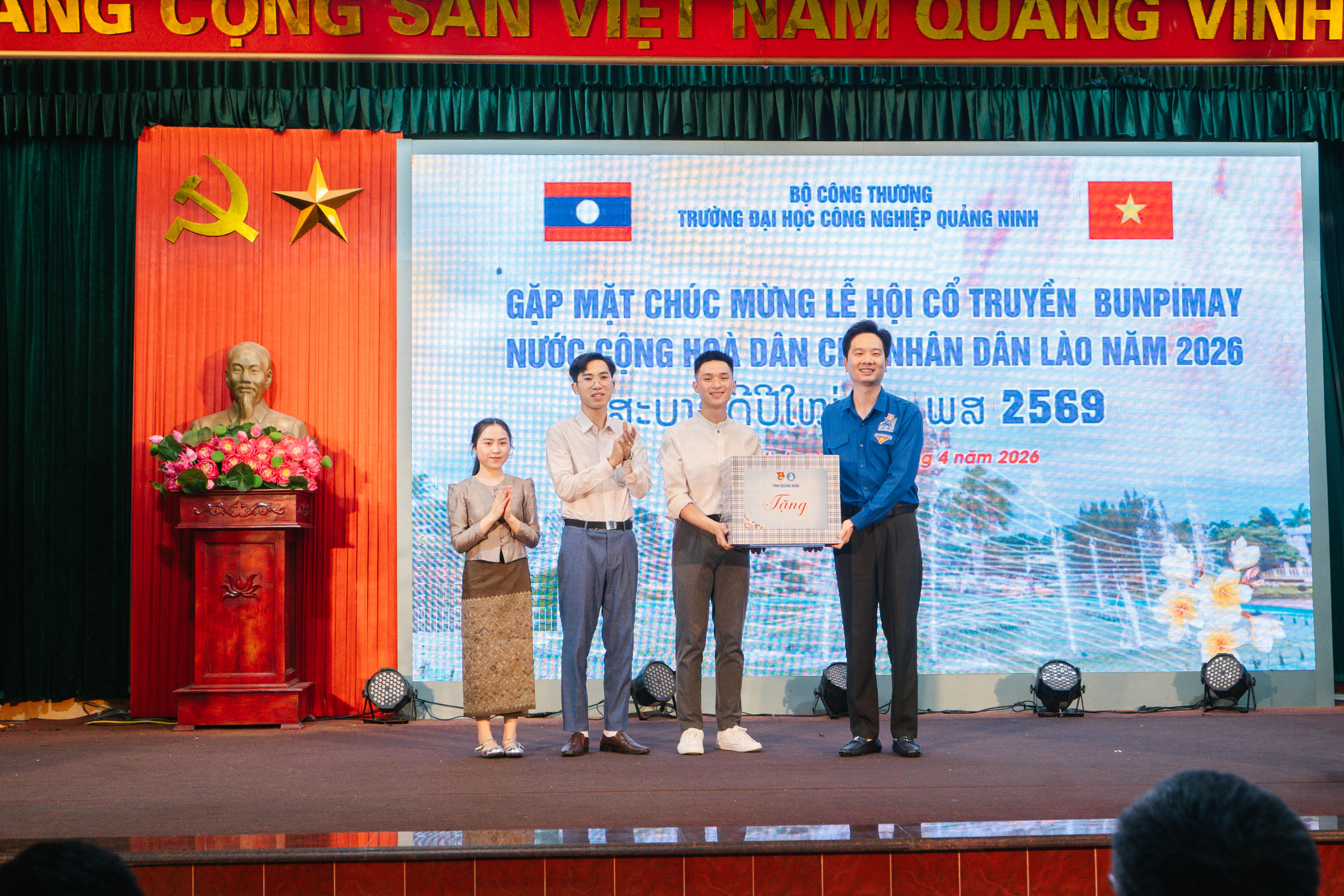 Nhân dịp Tết cổ truyền Bunpimay - Phật lịch 2569 của nước CHDCND Lào, ngày 16/4/2026 Trường Đại học Công nghiệp Quảng Ninh đã tổ chức buổi gặp mặt vui đón tết cổ truyền Bunpimay cho các lưu học sinh Lào đang học tập tại trường trong không khí ấm áp, thân tình và đậm đà bản sắc văn hóa.