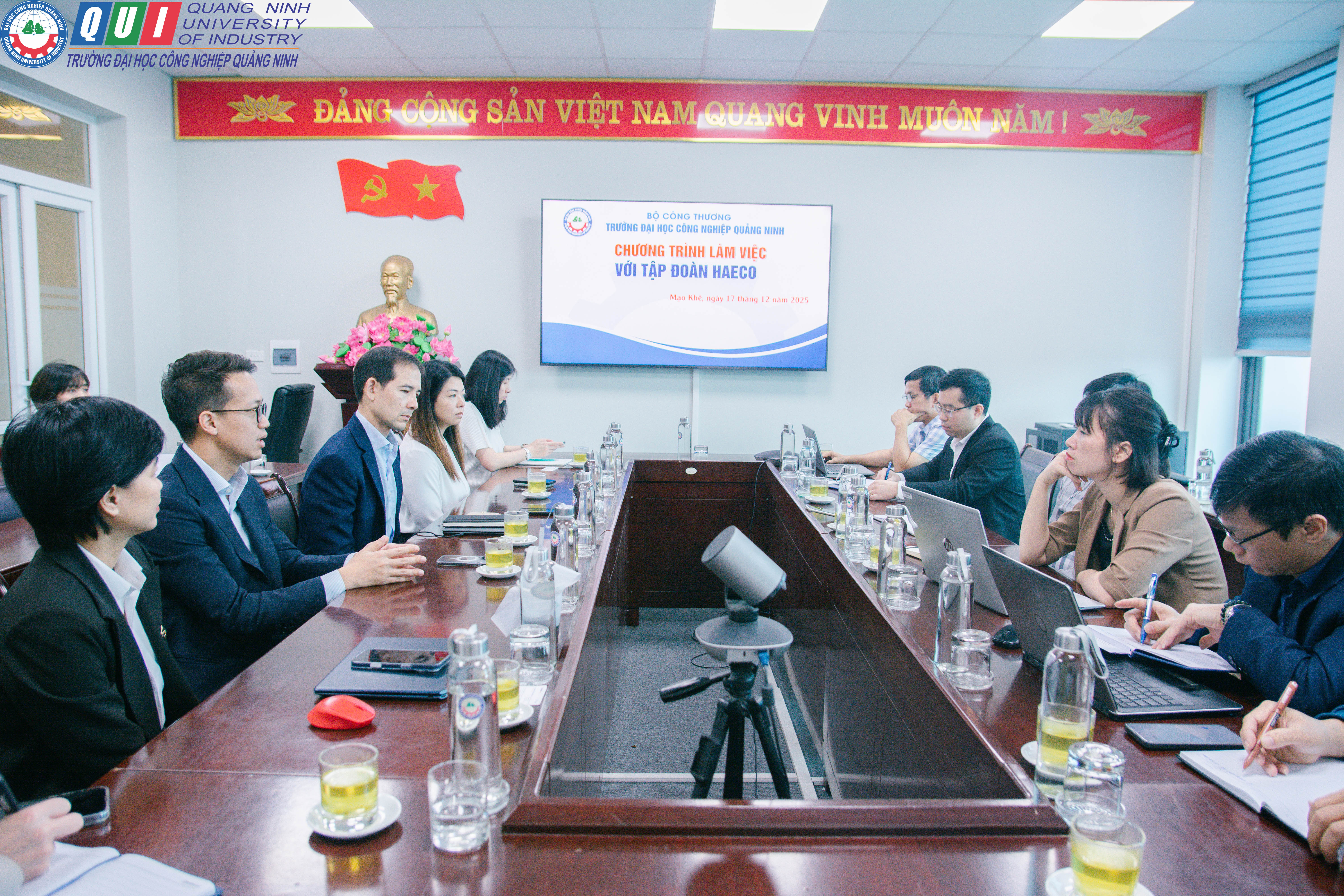 Trong khuôn khổ tăng cường hợp tác, mở rộng quan hệ với doanh nghiệp trong lĩnh vực công nghiệp - kỹ thuật cao, sáng ngày 17/12/2025 Trường Đại học Công nghiệp Quảng Ninh đã tổ chức buổi làm việc với Tập đoàn HAECO. Đây là hoạt động có ý nghĩa quan trọng, góp phần hiện thực hóa định hướng gắn kết đào tạo với nhu cầu thực tiễn của doanh nghiệp, đồng thời mở ra nhiều cơ hội học tập, thực hành và việc làm cho sinh viên nhà trường.
