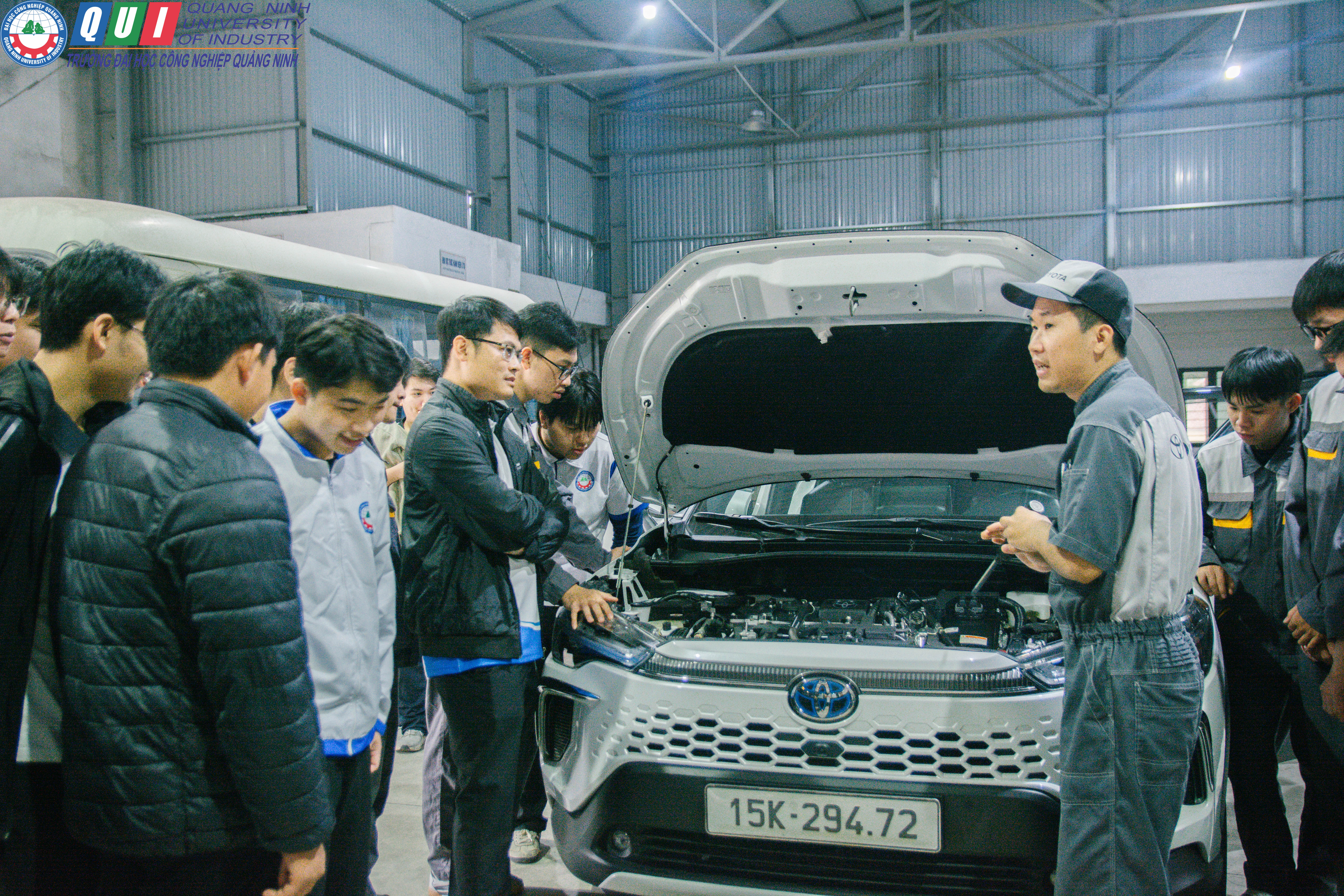 Sáng ngày 12/12/2025,Trường Đại học Công nghiệp Quảng Ninh phối hợp với Công ty TNHH Toyota Nankai Hải Phòng triển khai hoạt động hỗ trợ đào tạo dòng xe lai điện Hybrid, đánh dấu bước tiến mới trong hợp tác nhà trường - doanh nghiệp trong lĩnh vực công nghệ ô tô hiện đại.