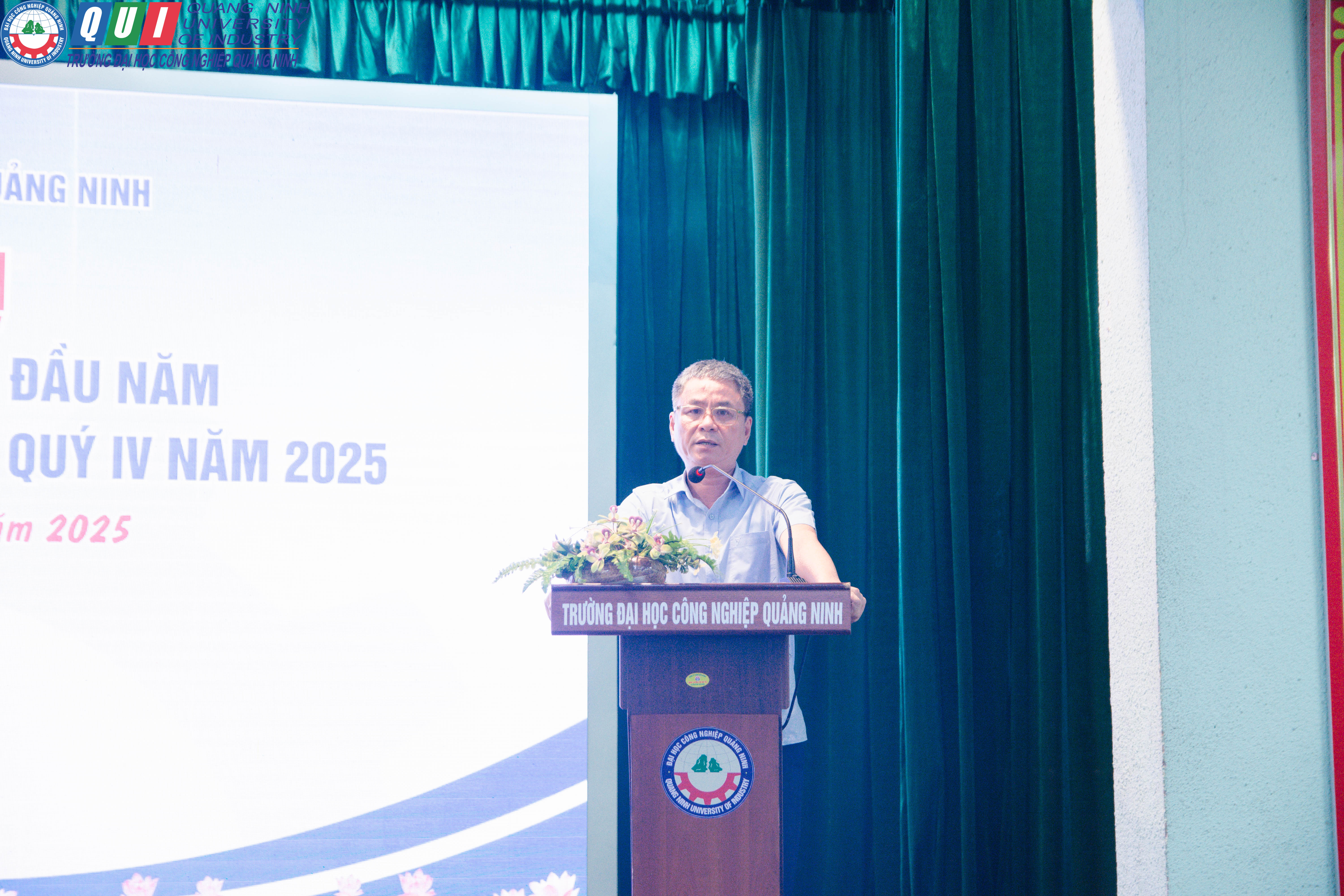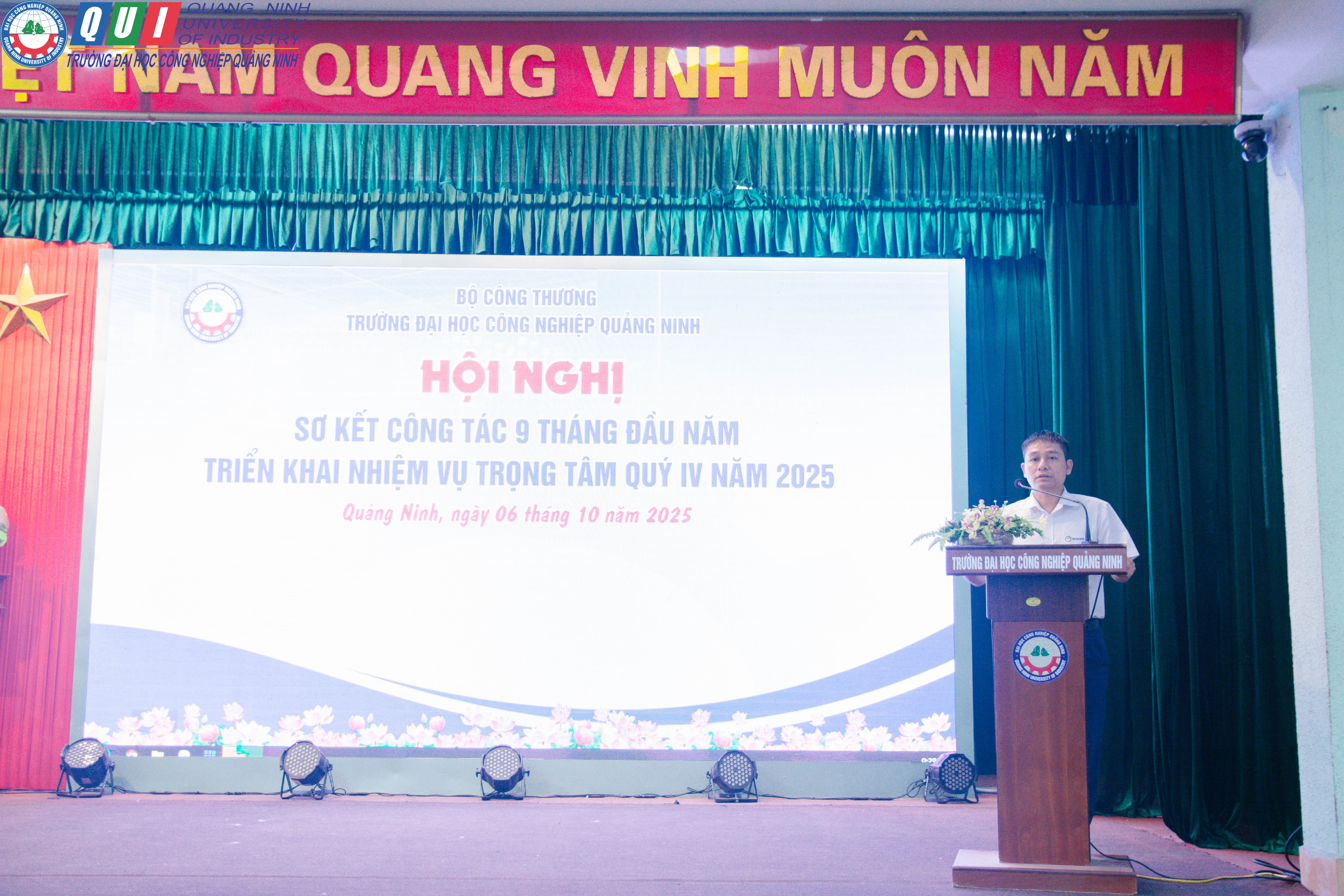 Thực hiện chương trình công tác năm 2025, sáng ngày 06/10/2025 Trường Đại học Công nghiệp Quảng Ninh tổ chức “Hội nghị sơ kết công tác 9 tháng đầu năm và triển khai nhiệm vụ trọng tâm quý IV năm 2025” nhằm đánh giá toàn diện kết quả đã đạt được, nhìn nhận những khó khăn, hạn chế còn tồn tại, từ đó đề ra phương hướng, nhiệm vụ trọng tâm trong thời gian tới.