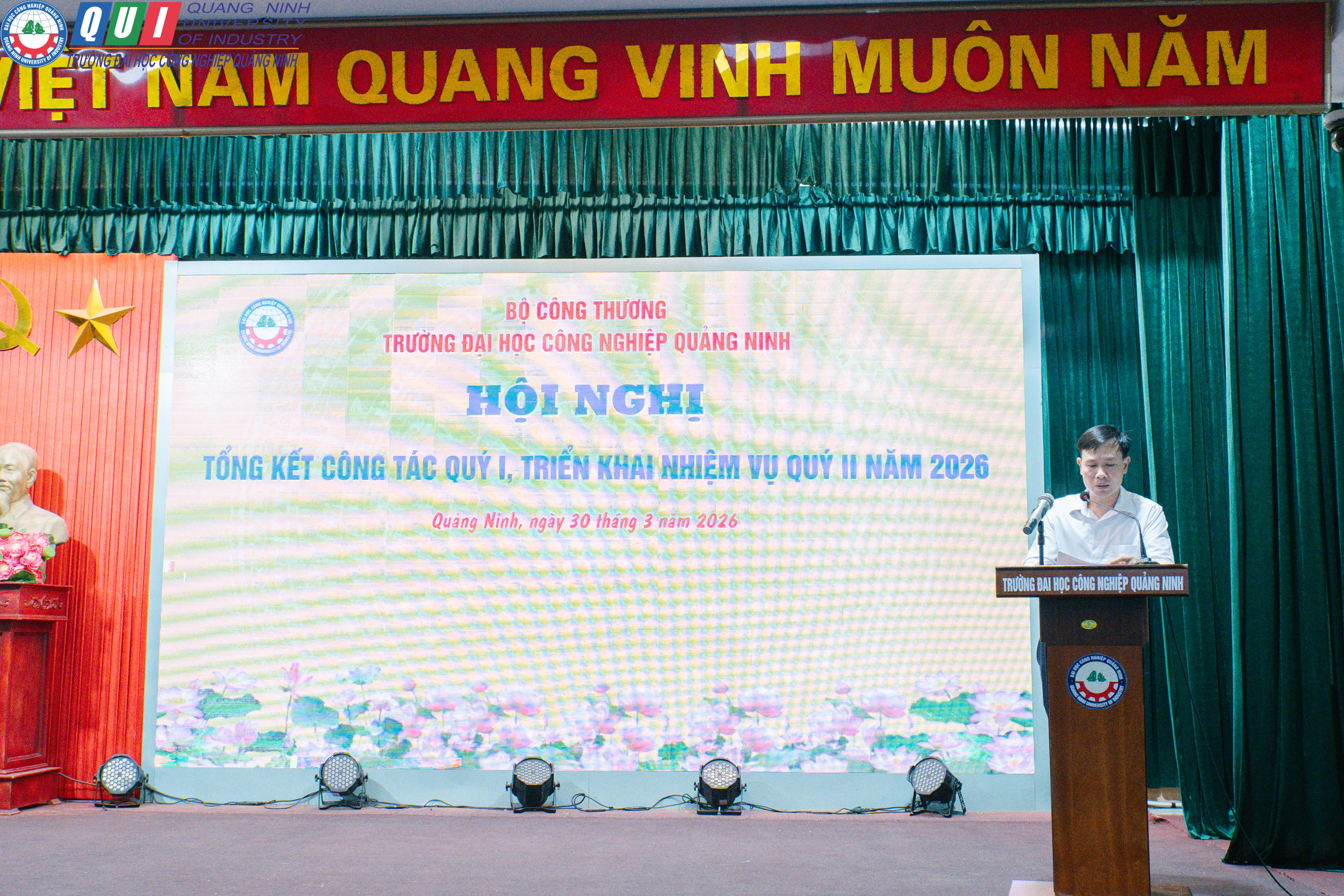 Sáng ngày 30/3/2026, Trường Đại học Công nghiệp Quảng Ninh đã tổ chức Hội nghị sơ kết công tác Quý I và triển khai phương hướng, nhiệm vụ Quý II năm 2026. Hội nghị nhằm đánh giá toàn diện kết quả thực hiện nhiệm vụ trong 3 tháng đầu năm, đồng thời đề ra các giải pháp trọng tâm để nâng cao hiệu quả hoạt động trong thời gian tới.