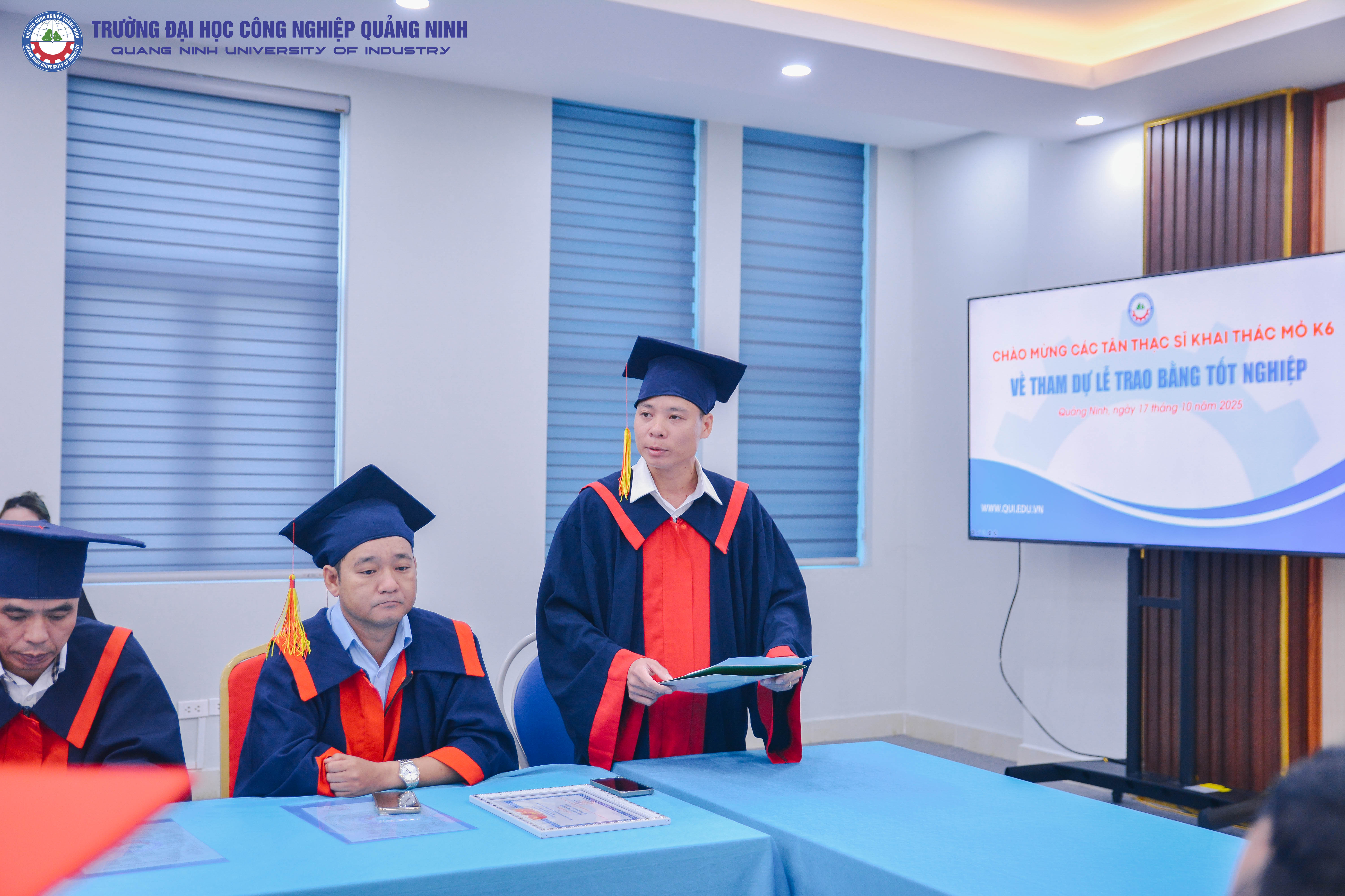 Chiều ngày 17 tháng 10 năm 2025, Trường Đại học Công nghiệp Quảng Ninh đã long trọng tổ chức Lễ trao bằng tốt nghiệp lớp Thạc sĩ K6. Đây là sự kiện có ý nghĩa đặc biệt, đánh dấu chặng đường học tập, nghiên cứu nghiêm túc và nhiều nỗ lực của các học viên cao học trong suốt thời gian qua, đồng thời khẳng định uy tín, chất lượng đào tạo sau đại học của Nhà trường.